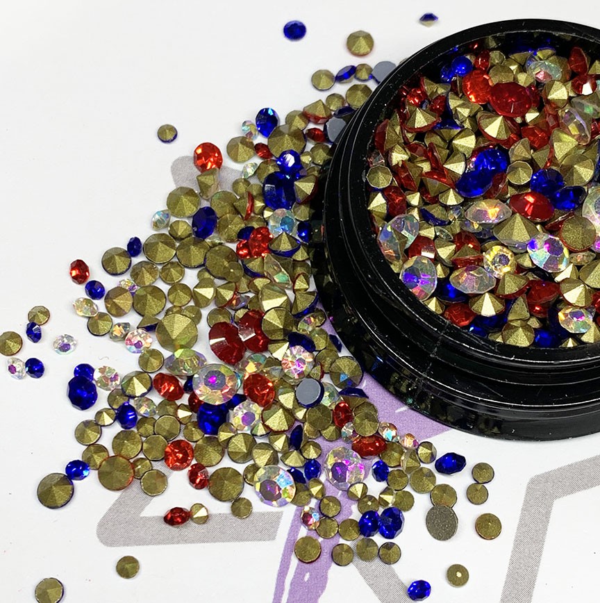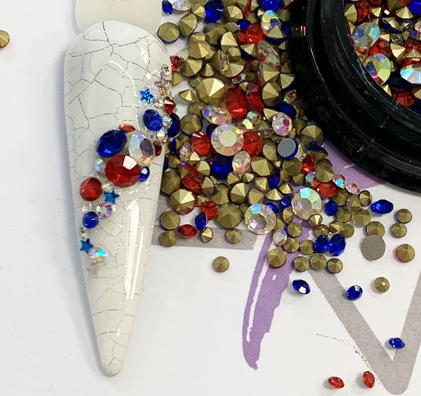 Red, Blue and Crystal AB Pointback mix perfect for the summer holidays!