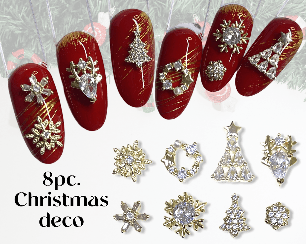 mix of 8 gold and crystal Christmas themed deco.